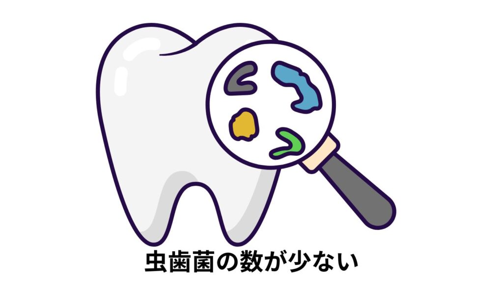 虫歯にならない人、なりにくい人の特徴1つ目は、虫歯菌の数が少ないことです。