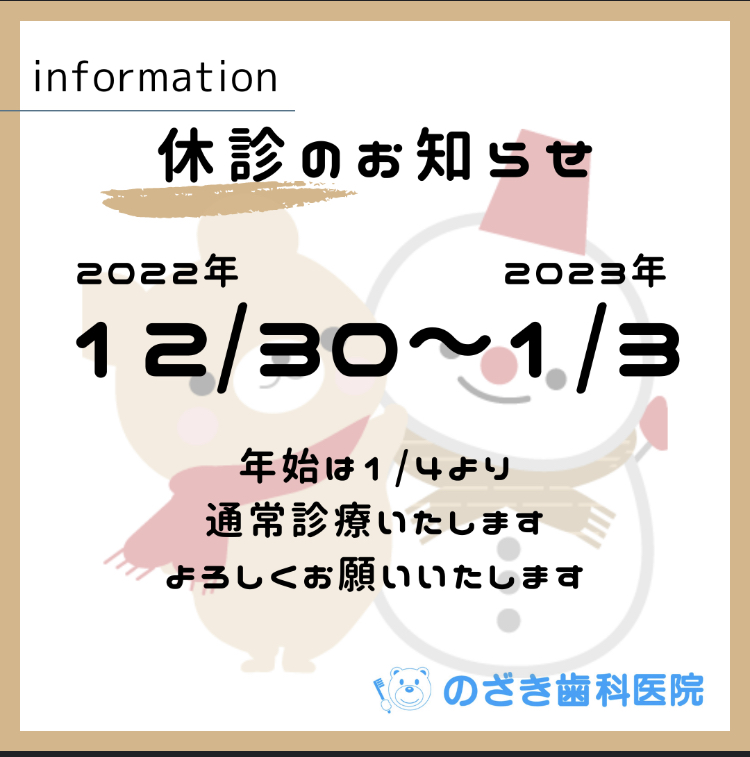 〜年末年始休診のお知らせ〜