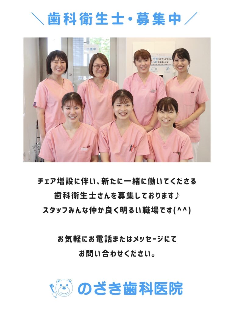 増患に伴い、のざき歯科・東広島おとなこども矯正歯科で共に働いてくれる歯科衛生士スタッフ(常勤・非常勤)を募集しております!