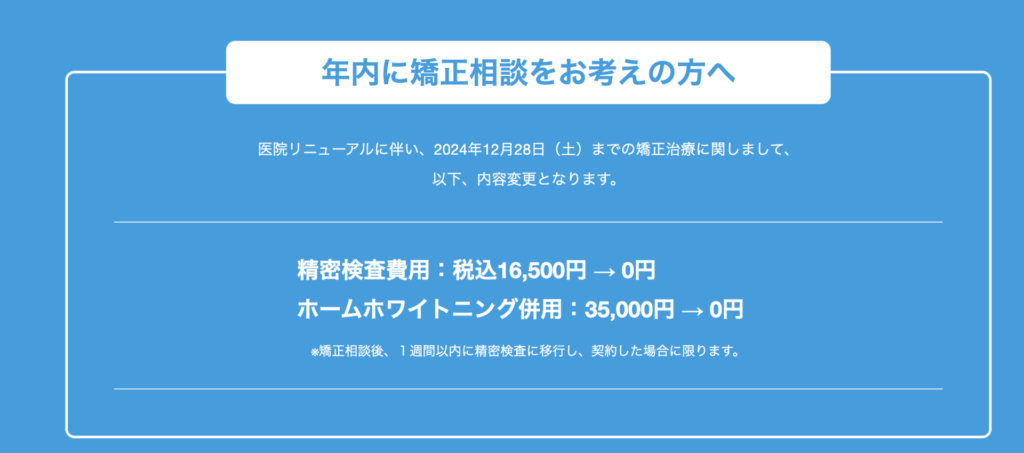 医院リニューアルに伴い、2024年12月28日(土)までの矯正治療に関しまして、